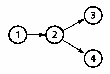The graph in figure 2 has two leaves: check-ins 3 and 4. Check-in 2 has two children, check-ins 3 and 4. We call this stituation a fork.