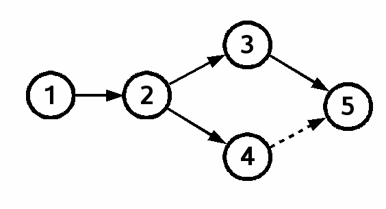 Alas, reality often interferes with the simple linear development of a project. Suppose two programmers make independent modifications to check-in 2. After both changes are checked in, we have a check-in graph that looks like figure 2: